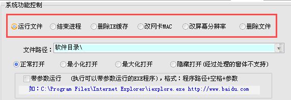 三、运行exe文件可以选择正常打开,最小化,最大化和隐藏打开,还可以勾选带参数运行,比如 C:\Program Files\Internet Explorer\iexplore.exe http://www.dj0188.com 这样会调用ie浏览器打开www.dj0188.com这个网站