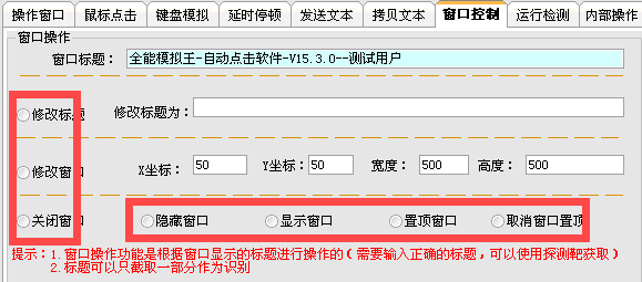 一.拖动探靶到要修改程序的窗口,软件会自动获取标题(可以只输入部分,如 无标题 - 记事本 可以只输入 无标题)