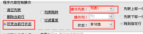 作用:修改当前行的勾选状态(如使用“列表1-#-1”变量读取文本列表的内容后,指针在第5行,这时当前行就是第5行)。如在发帖中可以把发送成功的使用这个功能去掉勾选,去掉勾选的就不会再次被读取